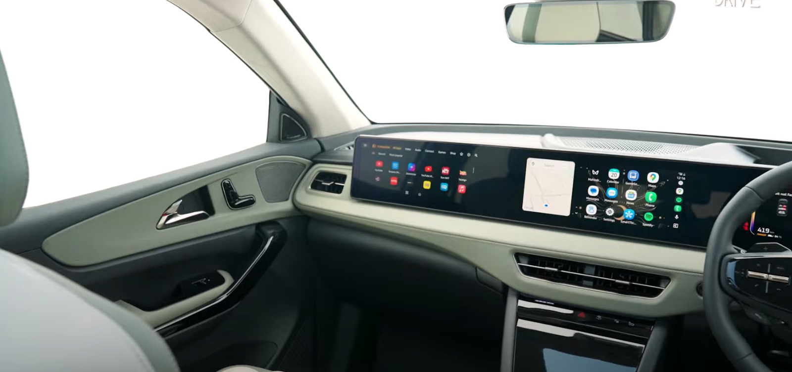 Triple Screen Setup: यह Dashboard का Highlight है। Driver Display, Infotainment और Passenger Screen—तीनों 12.3-inch की हैं, जो Snapdragon 8155/8295 Chipset पर चलती हैं। यह User Interface को Lag-Free और Super Responsive बनाता है।